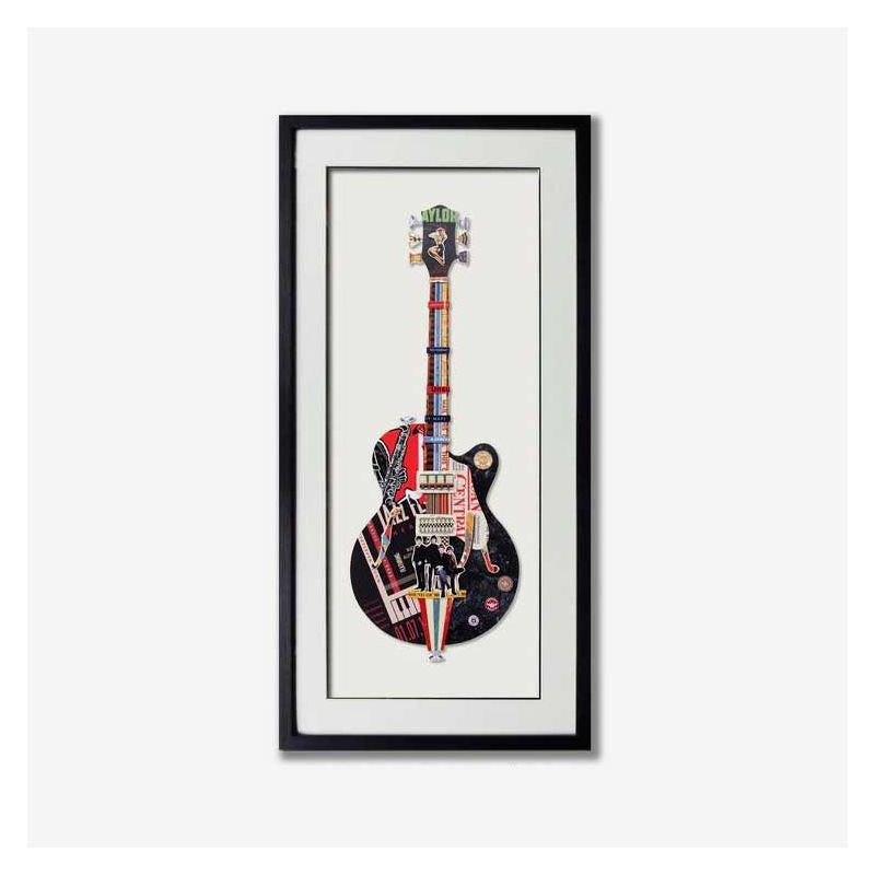 ΠΑΙΝΤΙΝΓ COLLAGE BLACK GUITAR WITH BLACK FRAME MDF 50Χ100 cm