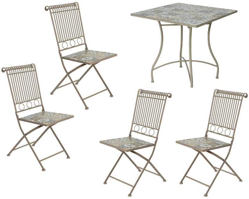 OUT DOOR SET 5 PIECES TABLE AND 4 CHAIRS WITH CERAMIK TILES Metal 78*78*77 , 45*38*90