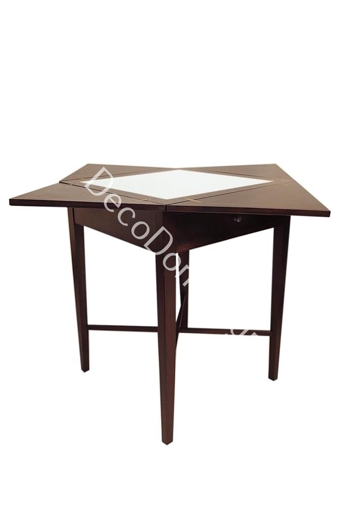 DARK BROWN EXTENDED SQUARE TABLE WITH GLASS Wood 55Χ55Χ75