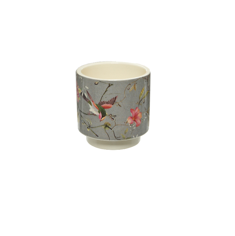 GREY PLANTER WITH FLOWERS Ceramic Φ10*10
