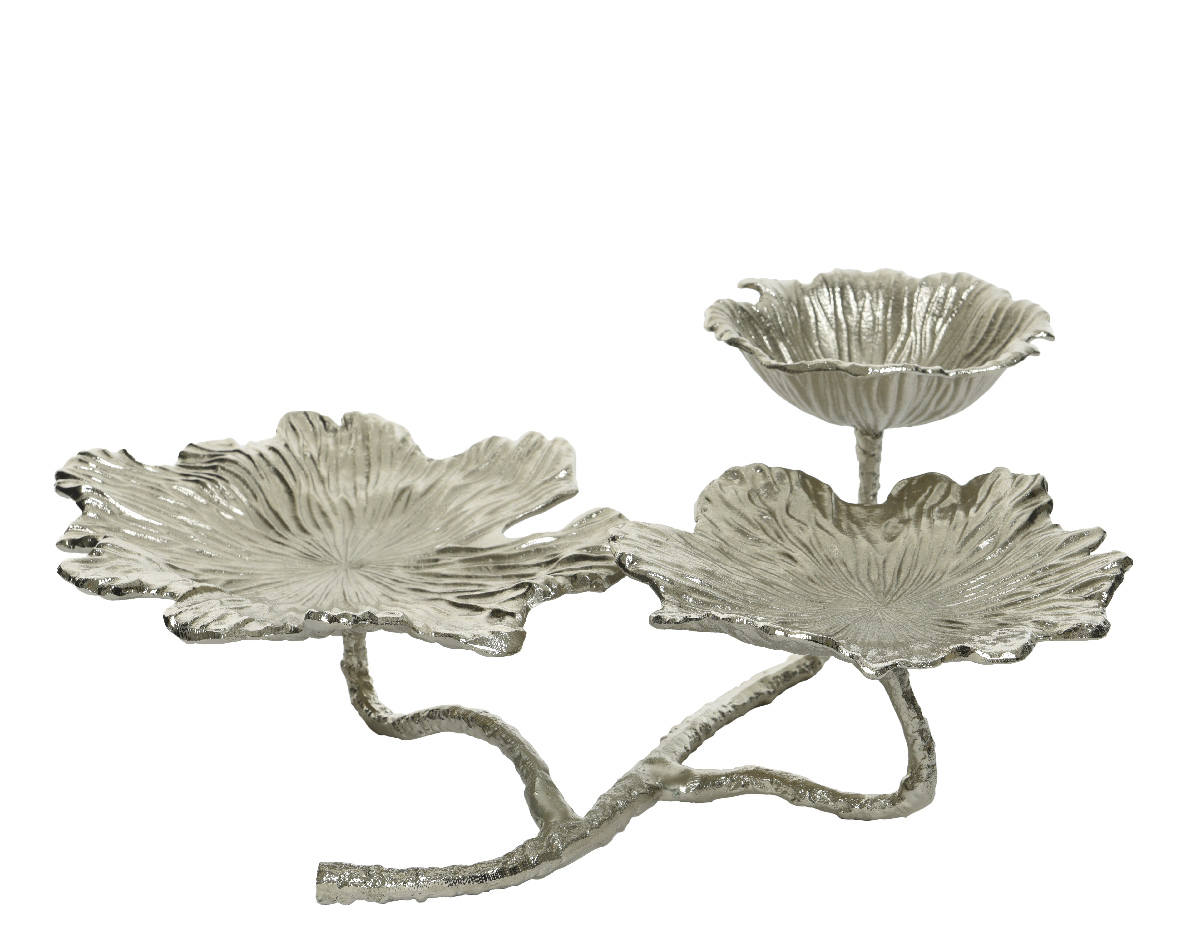 3 LEAVES SILVER DECORATIVE PLATTER Metal 48*53*17