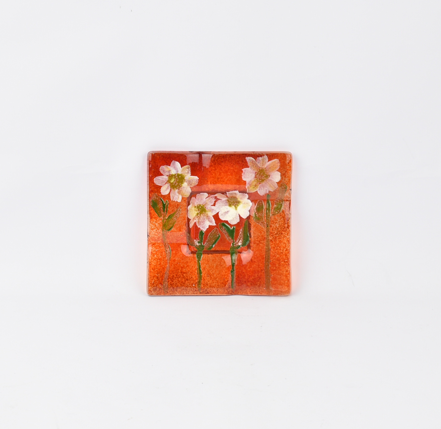 RED DRAWN SMALL ASHTRAY WITH DIASY Glass 11*11