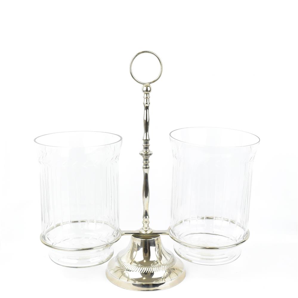 2 PLACES SERVING BOWL WITH INOX BASE Glass 38*15*40
