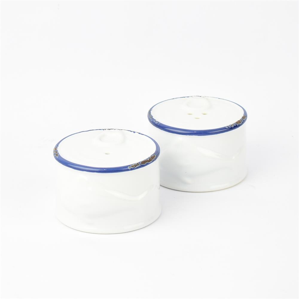 SALT AND PEPPER SET 2 PIECES WHITE WITH BLUE STRIPE Porcelain Φ7,5*5Υ