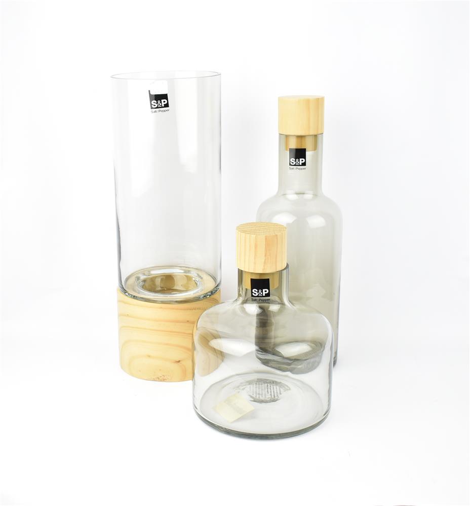 TRANSPARENT-GREY CARAFE WITH WOODEN CAP Glass Φ10.5*33