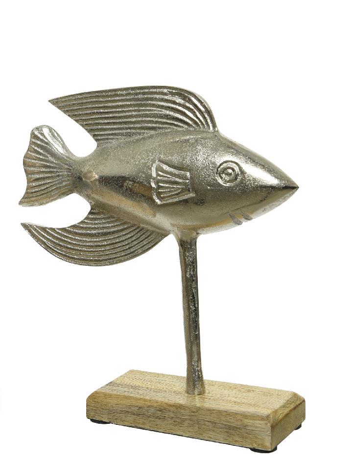RECTANGULAR DECORATIVE SILVER FISH IN BASE Wood 25*6*27Υ