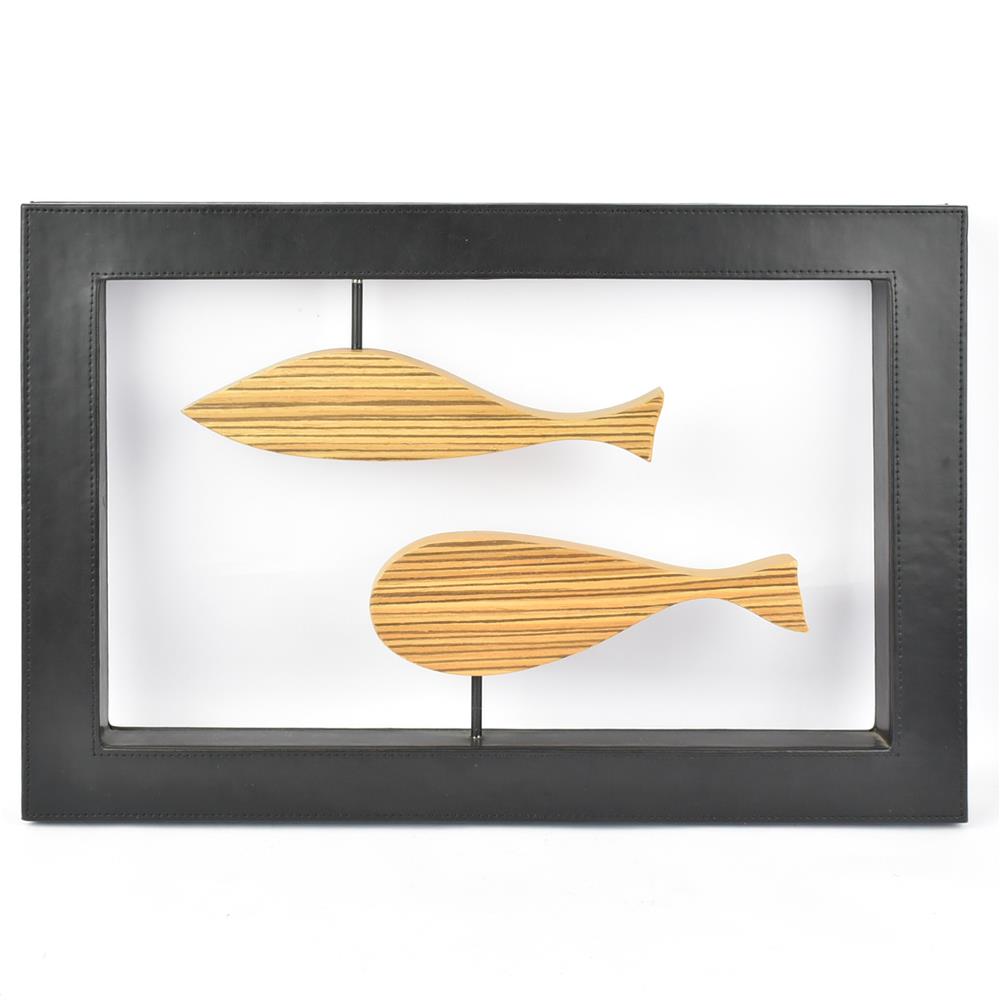 LEATHER FRAME WITH FISHES Wood 40*3.5*27.5