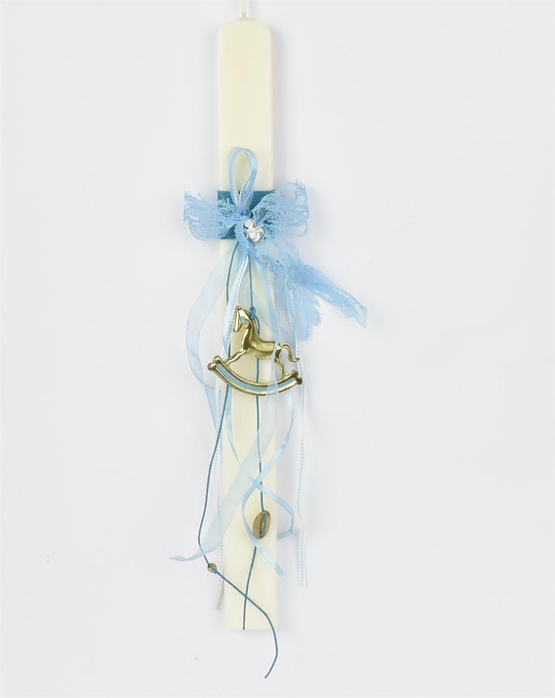 LIGHT BLUE CANDLE WITH GOLD HORSE Candle 3*1/6*35.5