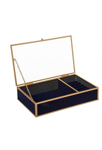2 CASES JEWELERY BOX BLUE VELVET Glass 23*14.5*5Υ