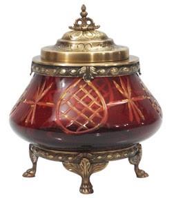 HANDMADE CHOCOLATE BOWL WITH LID AND RED CUTTING GLASS Glass 16*15*2