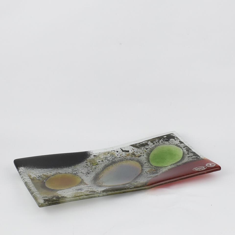 HANDMADE RECTANGULAR TRAY BLACK-RED-GREEN Glass 30Χ16