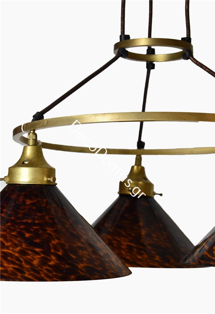 PENDANT LIGHT WITH BROWN-GOLD CAPS 3L Brass 57*32