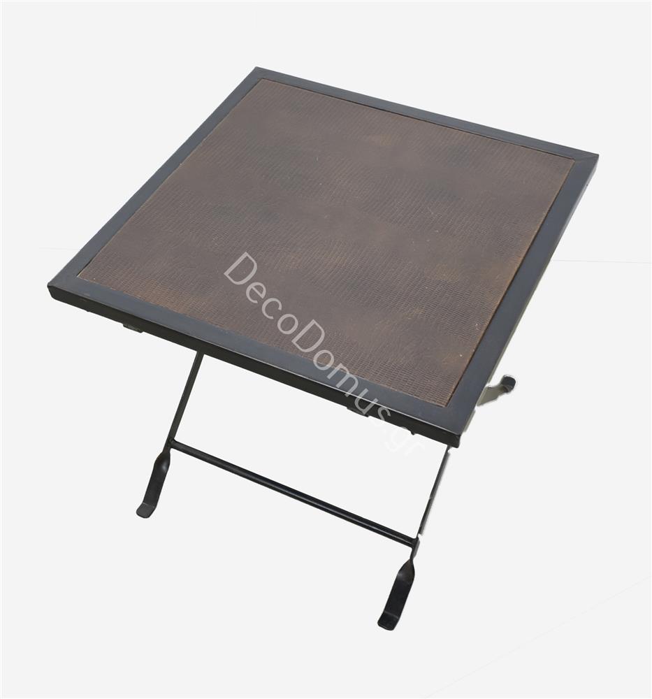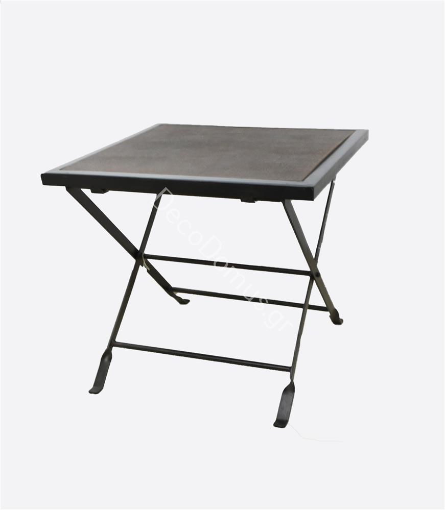 BLACK SIDE TABLE WITH BROWN LEATHER SURFACE Metal 51*51