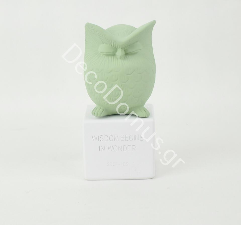 HANDMADE OWL VINTAGE GREEN Ceramic 6*6*13Y