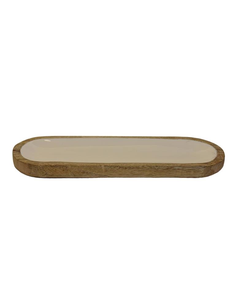 WHITE OVA; SERVING TRAY MANGO ENAMEL Wood 38*13*Η2