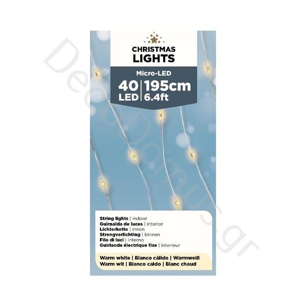 CHRISTMAS LIGHTS 40 LED WARM WHITE Glass 195 CM