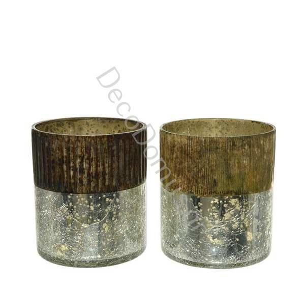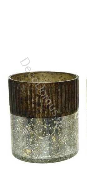 GOLD-BROWN CRACKLE ANTIQUE TEALIGHTHOLDER WITH LINES Glass Φ12.5*Η13