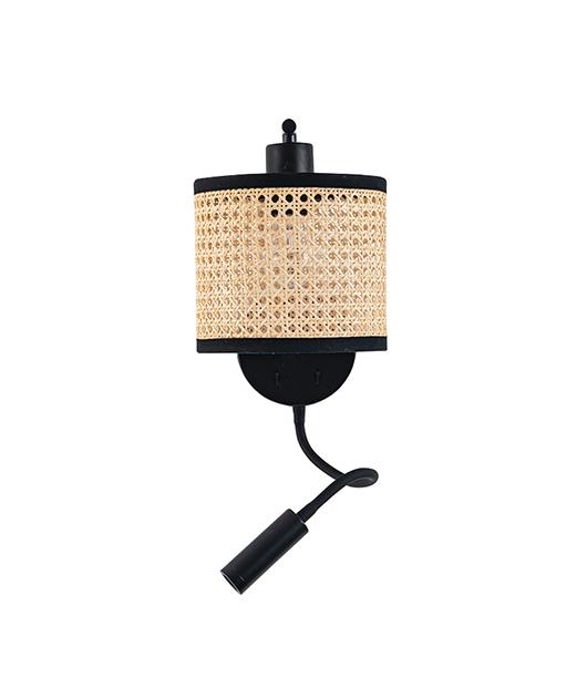 WALL LIGHT BLACK MATT AND BUSH IN NATURAL COLOR Metal L0.25W0.155H0.28