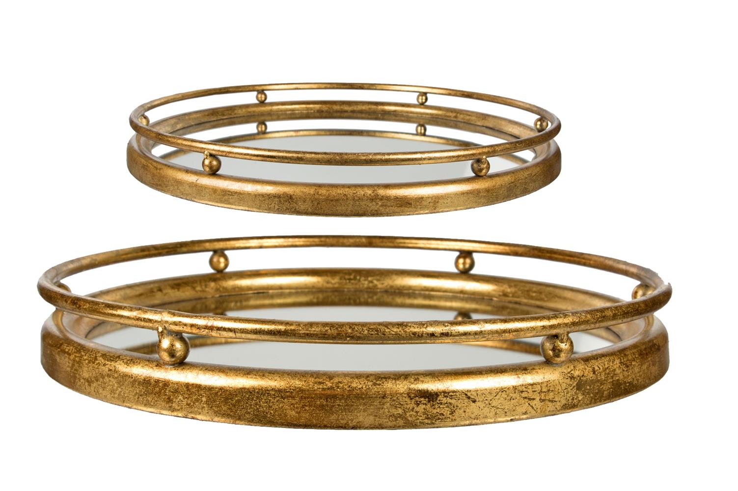 ROUND GOLD TRAY WITH MIRROR LARGE Wood Φ46xh5