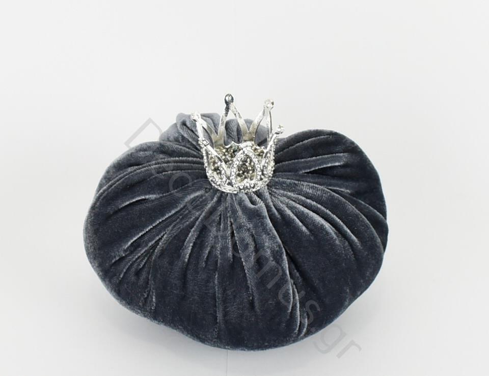 GREY VELVET PUMPKIN WITH SILVER CROWN Velvet Φ14xh14