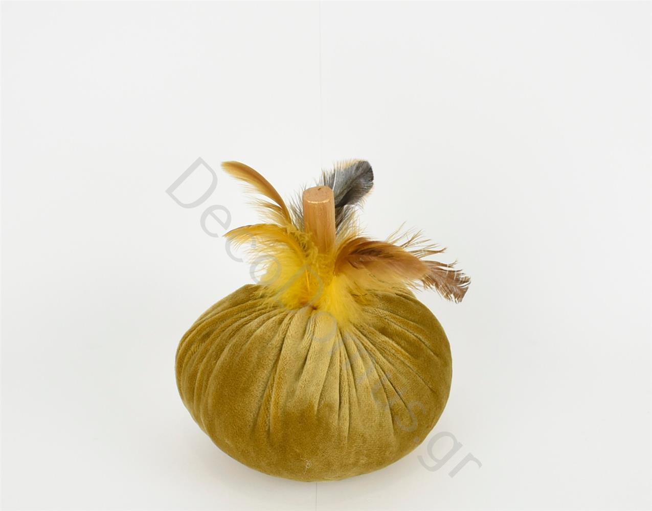 GOLD VELVET PUMPKIN WITH GOLD DECORATIONS AND FEATHERS Velvet Φ12xh15