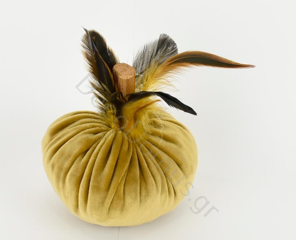 GOLD VELVET PUMPKIN WITH GOLD DECORATIONS AND FEATHERS Velvet Φ15xh17