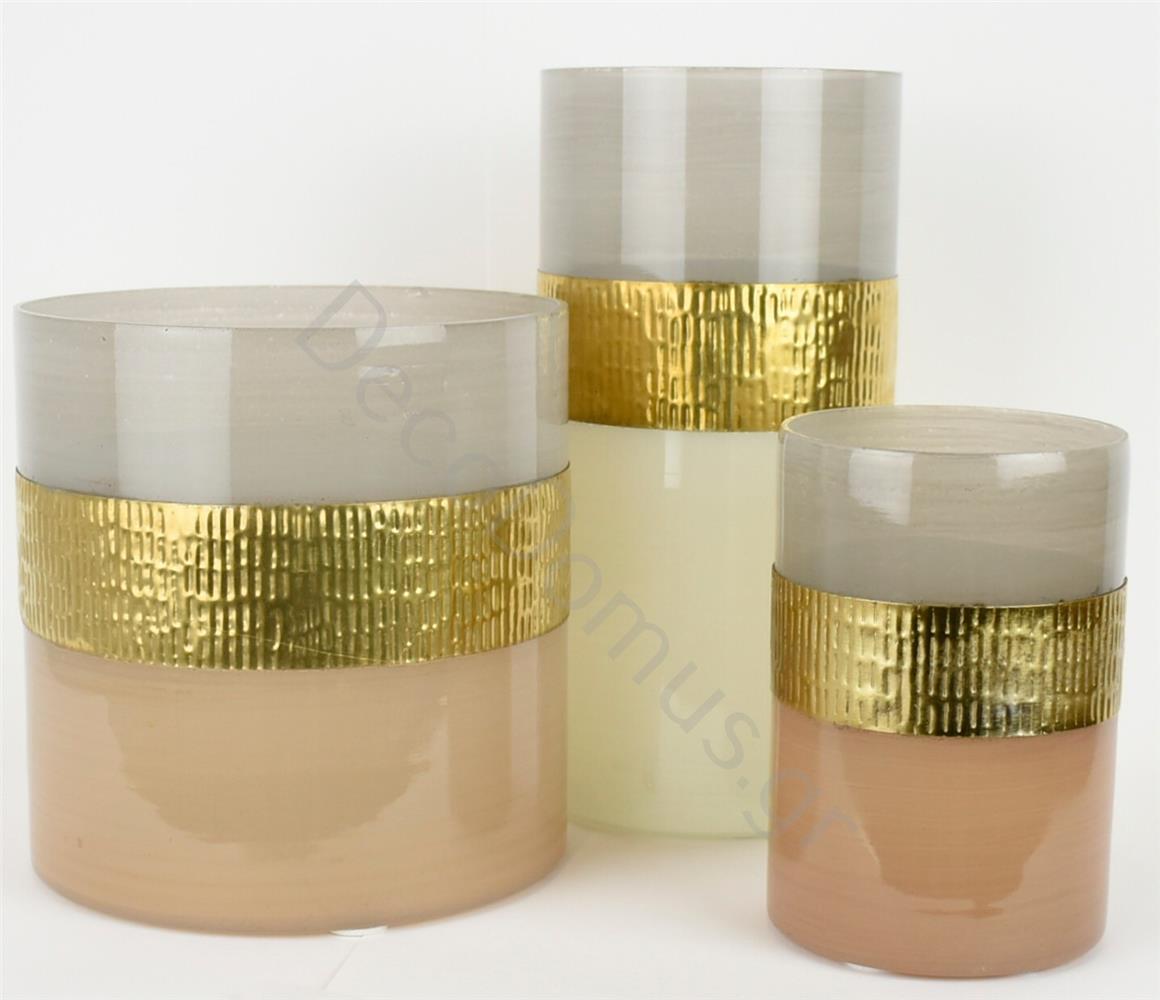 TRANSPARNT-BEIGE CANDLEHOLDER WITH GOLD DETAIL Metal Φ10xh15.5