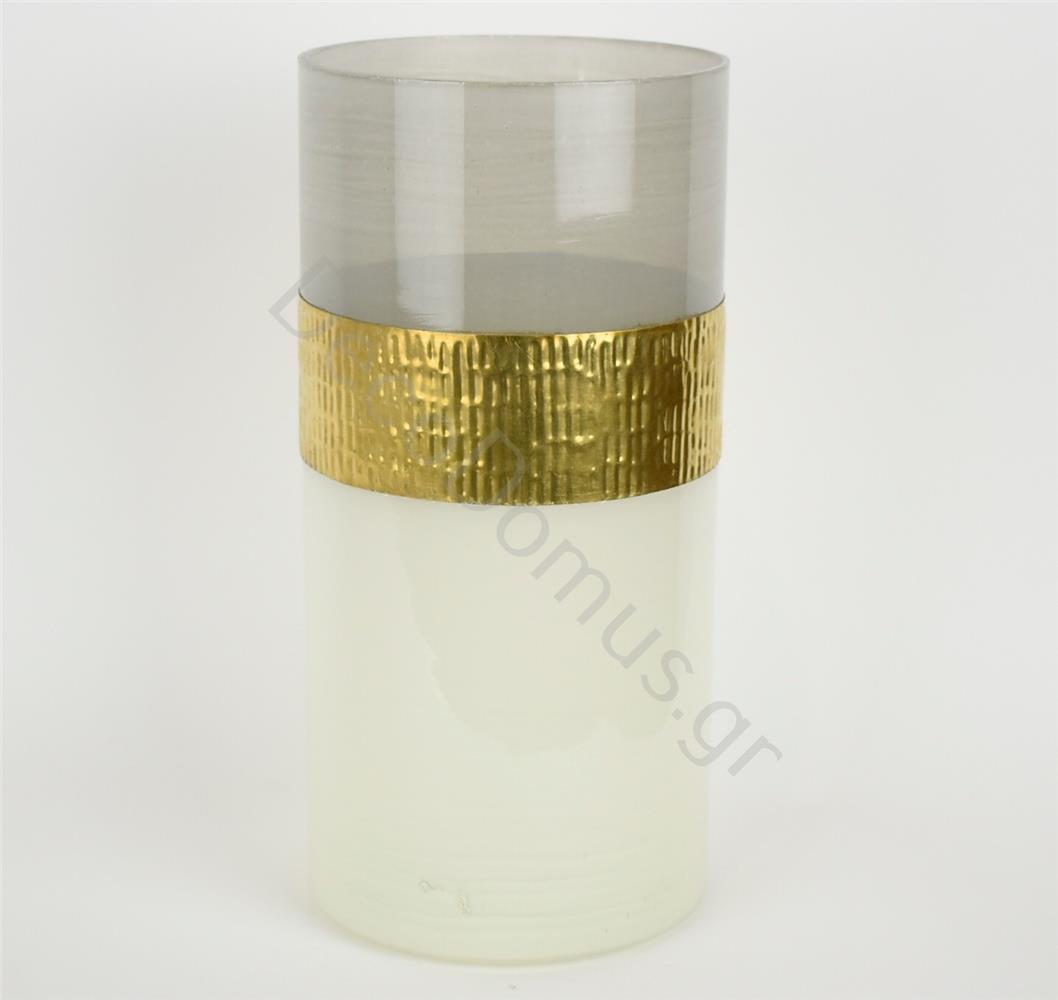 TRANSPARNT-WHITE CANDLEHOLDER WITH GOLD DETAIL Metal Φ13xh25.5