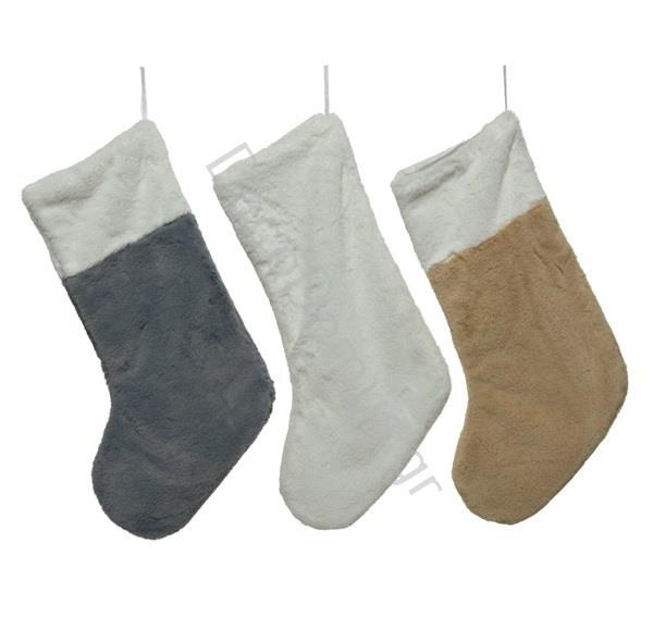 DECORATIVE STOCKING WITH FUR 3 COLOURS Fabric 35x0.5xh40