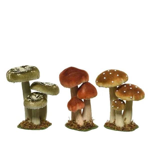 VELVET MUSHROOM WITH GRASS 3 COLOURS Velvet 9x12xh17