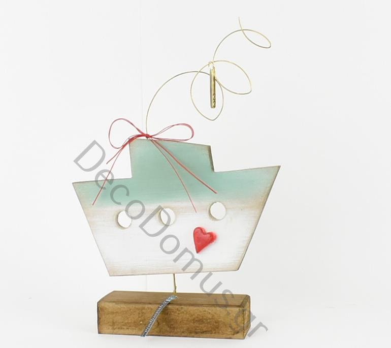 CHARM BOAT WHITE-LIGHT GREEN WITH 3 HOLES Wood 19x4xh28