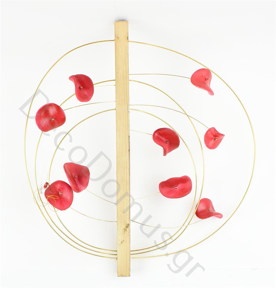 DECORATIVE HOOP WITH WOOD AND RED FLOWERS Wood 38x5xh40