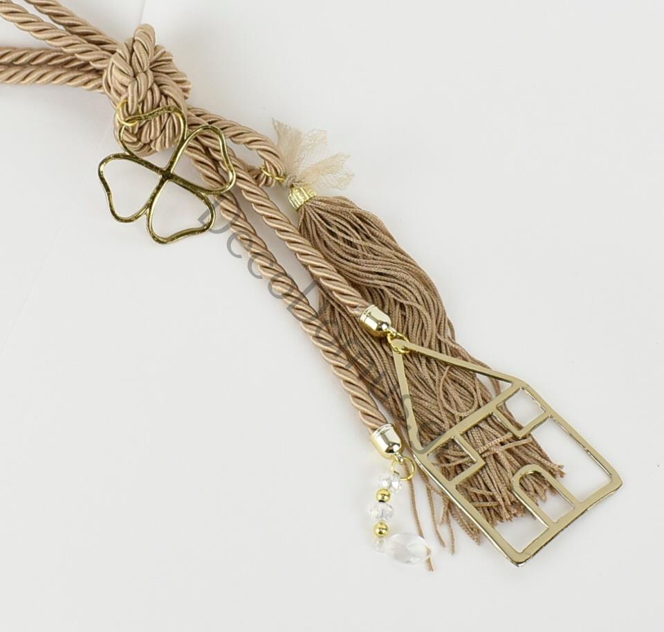 CHARM WITH BEIGΕ CORD AND GOLD FLOWER ANG HOUSE Metal 46 CM