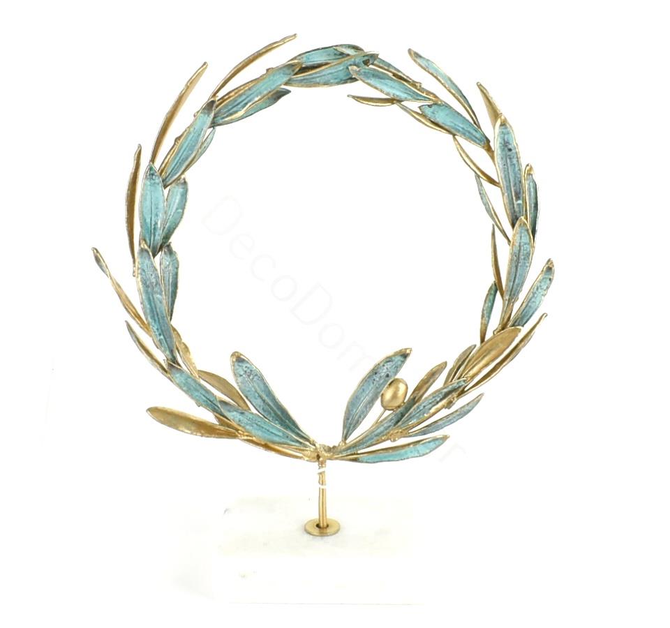 GOLDEN METALLIC OLIVE WREATH ON A MARBLE BASE Metal Φ0.22*Η0.25Salesprice with discount120,0 €
