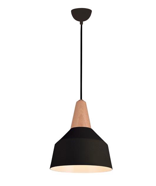 PENDANT LIGHT BLACK MATT WITH WOODEN DETAIL Aluminium Φ0.23*Η0.28