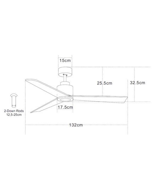 CEILING FAN BLACK MAT WITH SUMMER FUNCTION, 3 SPEEDS WITH BLACK BLADES Metal Φ1.32xΗ0.325-0.45