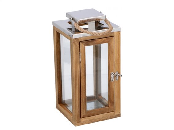 WOODEN LANTERN AND SILVER SMALL Wood 14Χ14Χ30Υ