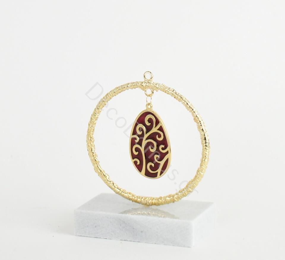 RED ENAMEL EGG WITH HOOP AND MARBLE BASE Metal 9x5xh12
