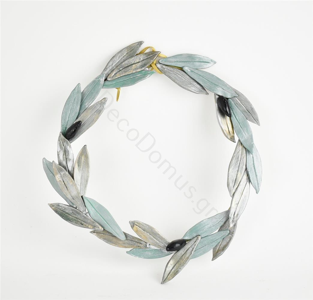 DECORATIVE WALL HOOP WITH SILVER-LIGHT GREEN LEAVES Ceramic Φ21