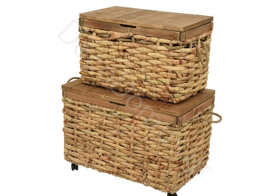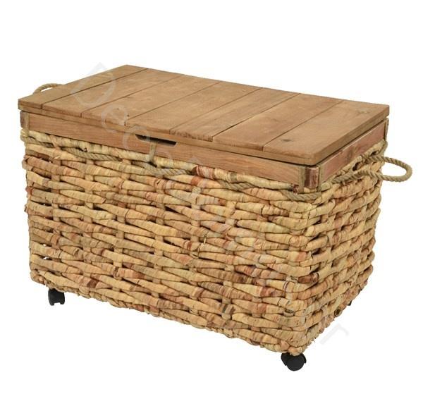 BAMBOO TRUNK WITH WOODEN LID LARGE WITH WHEELS Wood 74x44xh44