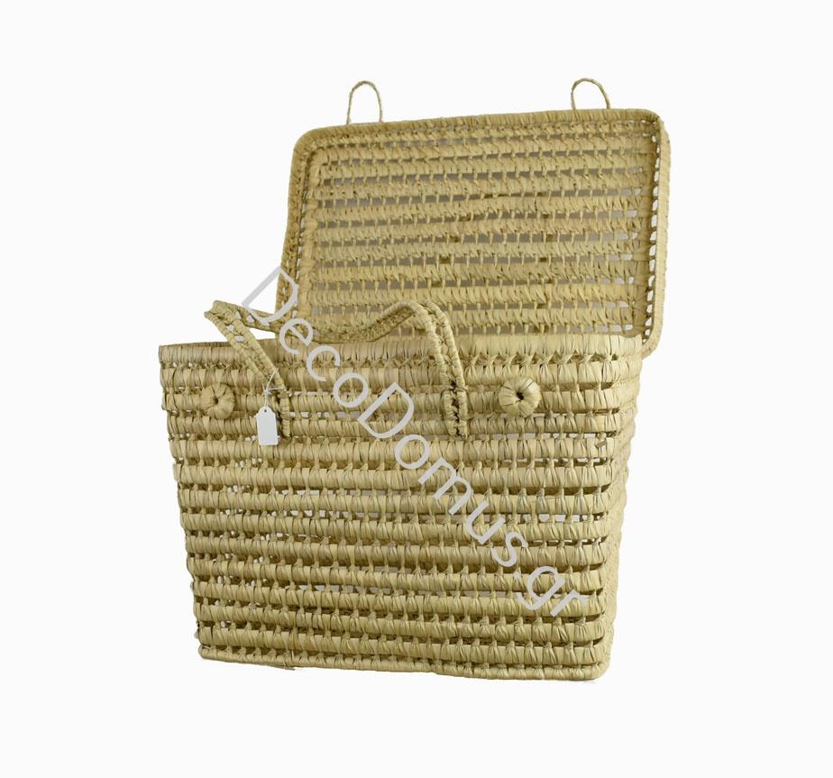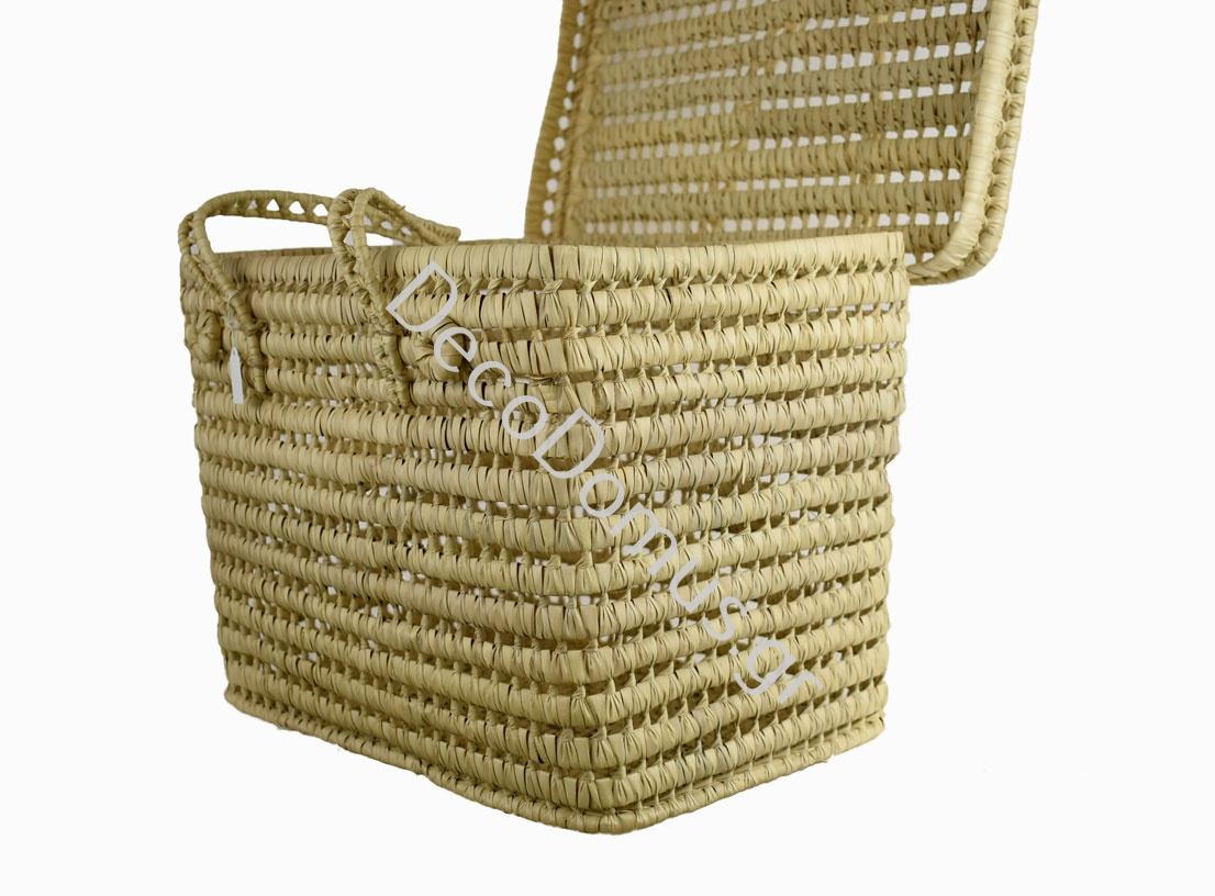 HANDMADE RECTANGULAR BASKET WITH LID SMALL Straw material 46x29.5xh32
