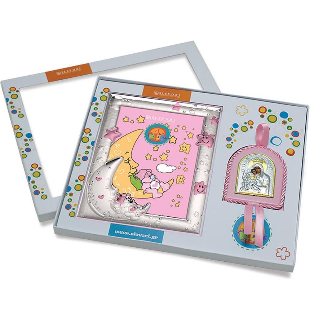 CHILDREN`S SET WITH MOON PINK SET 2 PIECES Wood 13x16.5 (9x12.5) / 6x7.5