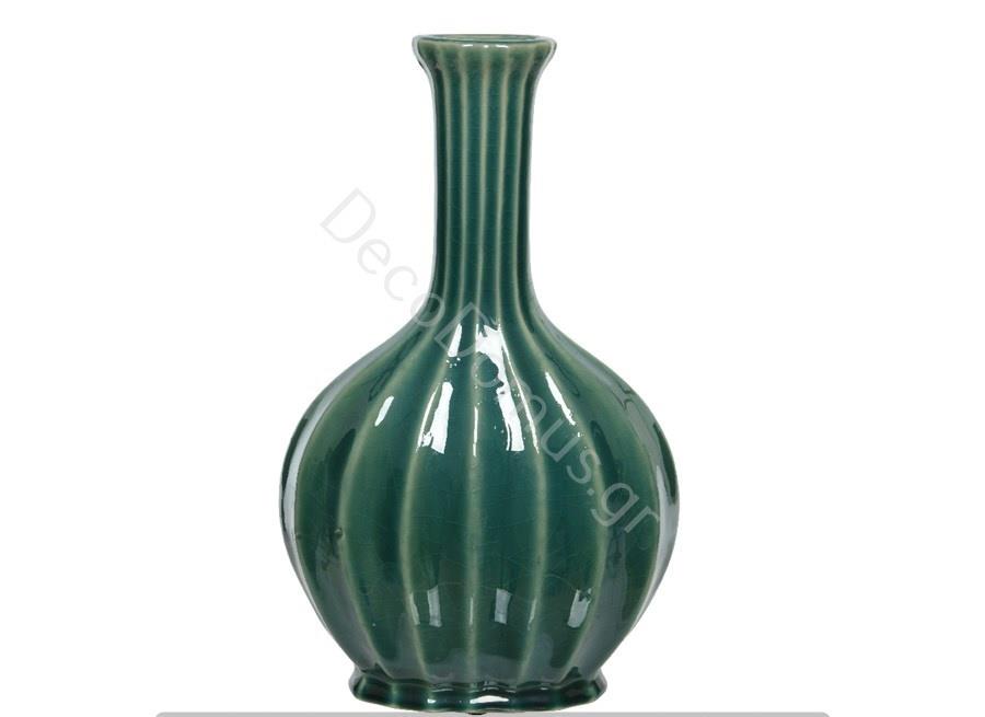 DECORATIVE VASE EMERALD GREEN WITH VERTICAL RELIEF LINES Glass 17.5*10*H28 CM.