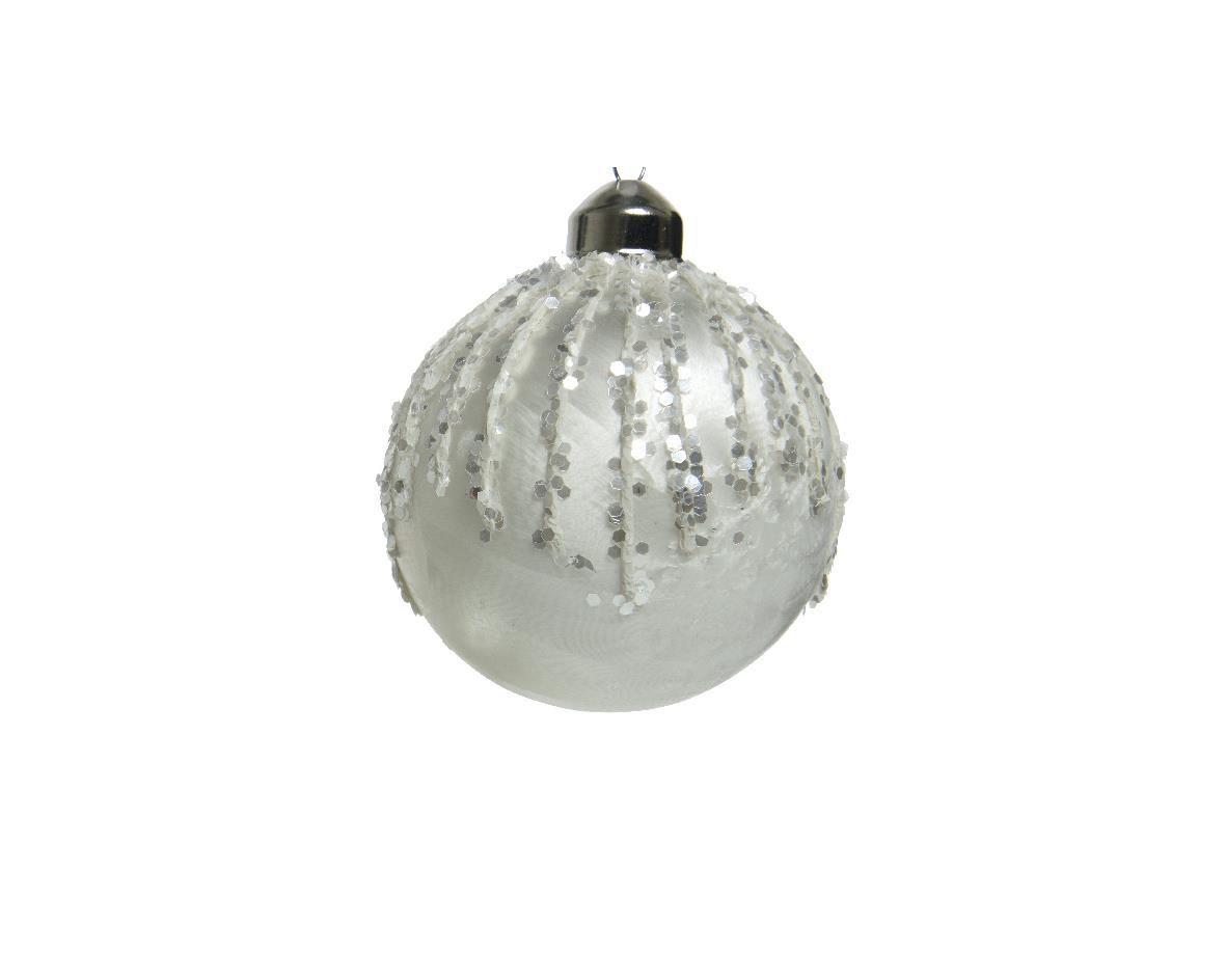 CHRISTMAS GLASS BAUBLE teetotum WITH ICE LAQUER AND GLITTER DECORIS - KAEMING Glass 8*8