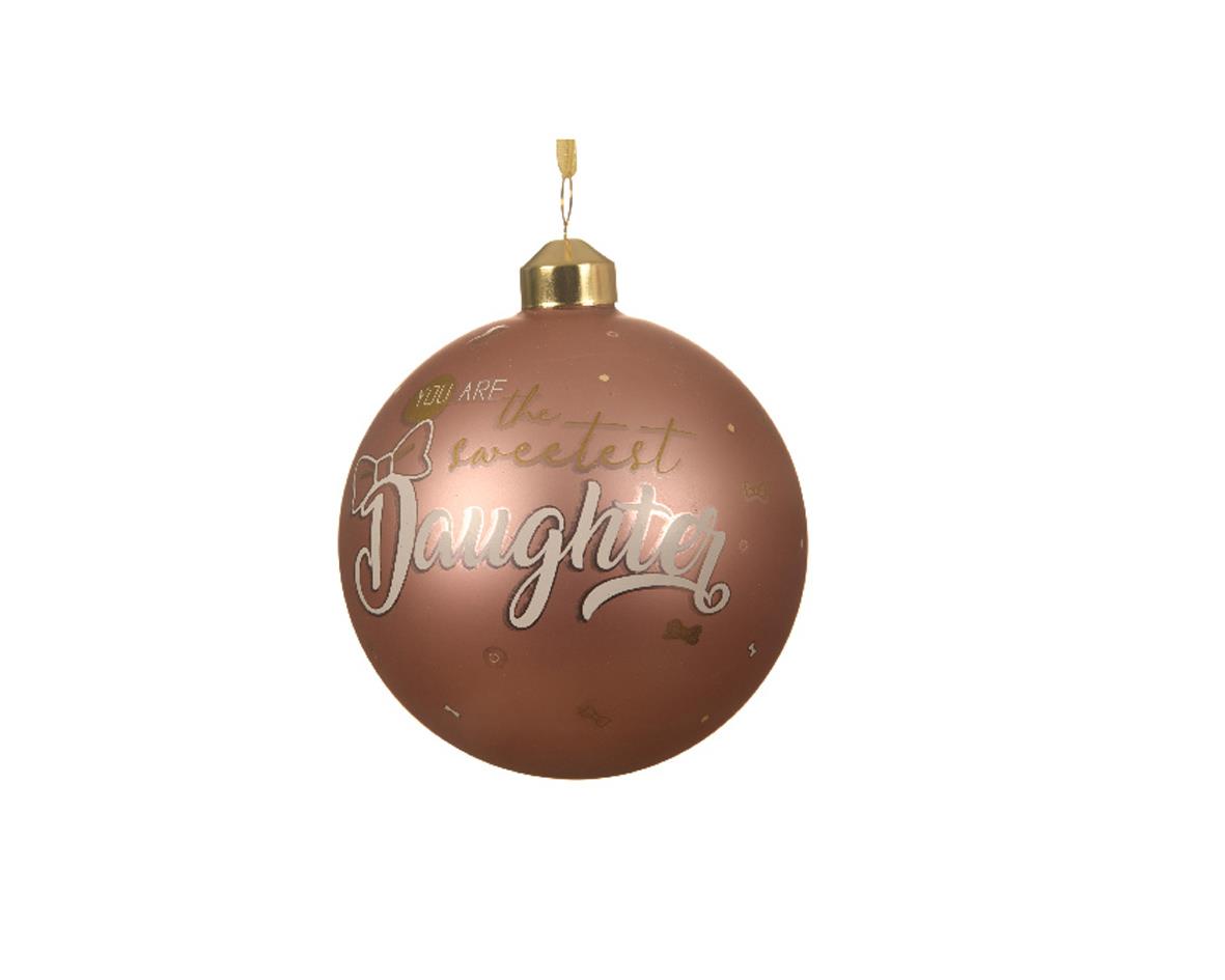 CHRISTMAS BAUBLE GLASS MATT PINK ``DAUGHTER`` dia 10cm - KAEMINGK Glass 10*10