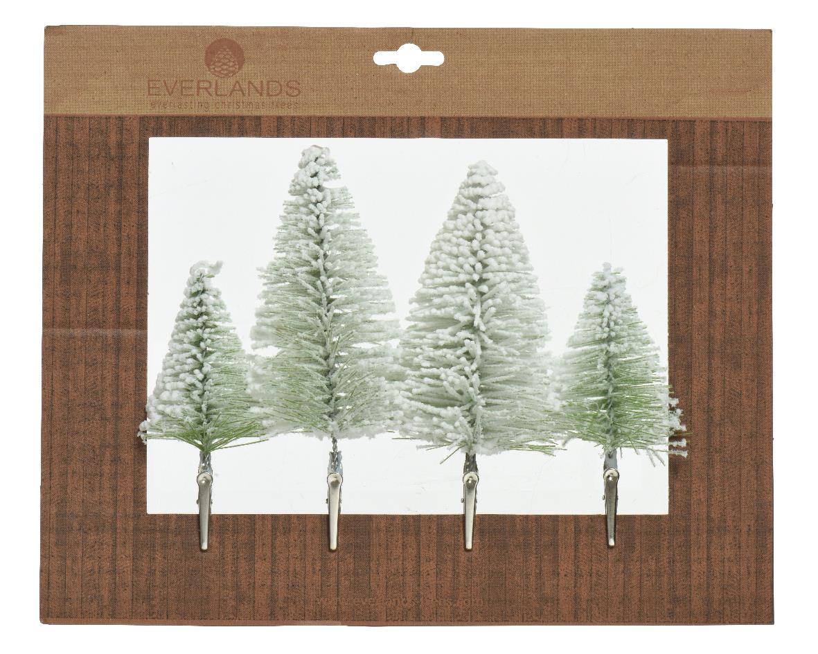 CHRISTMAS BAUBLE SNOWY MINI TREE ON CLIP SET OF 4PCS - KAEMINGK Synthetic 8*8*H27