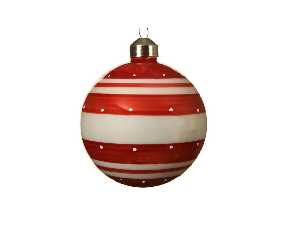 CHRISTMAS BAUBLE RED WITH WHITE dia 8cm - KAEMINGK Metal 8*8*h8