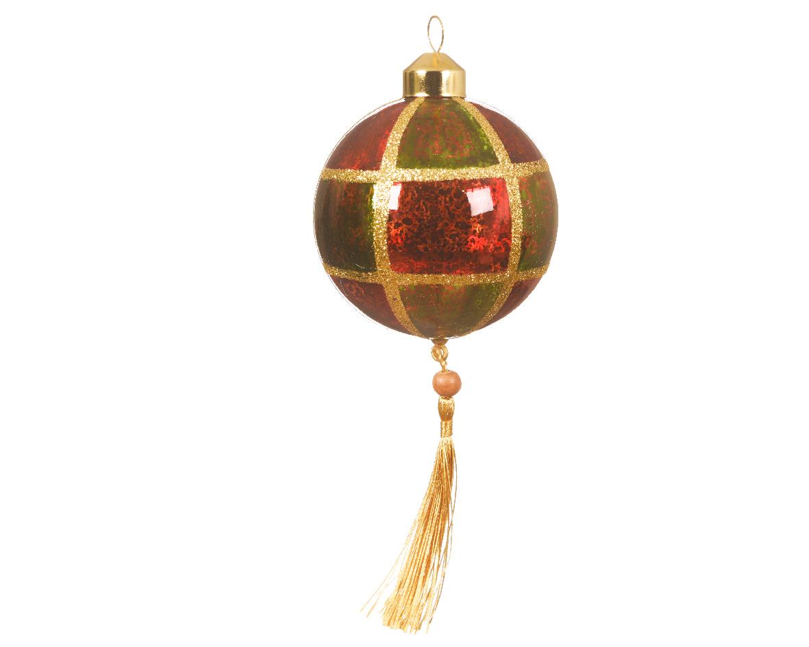 CHRISTMAS GLASS BAUBLE SHINY GREEN WITH RED dia 8cm - KAEMINGK Metal 8*8*H8