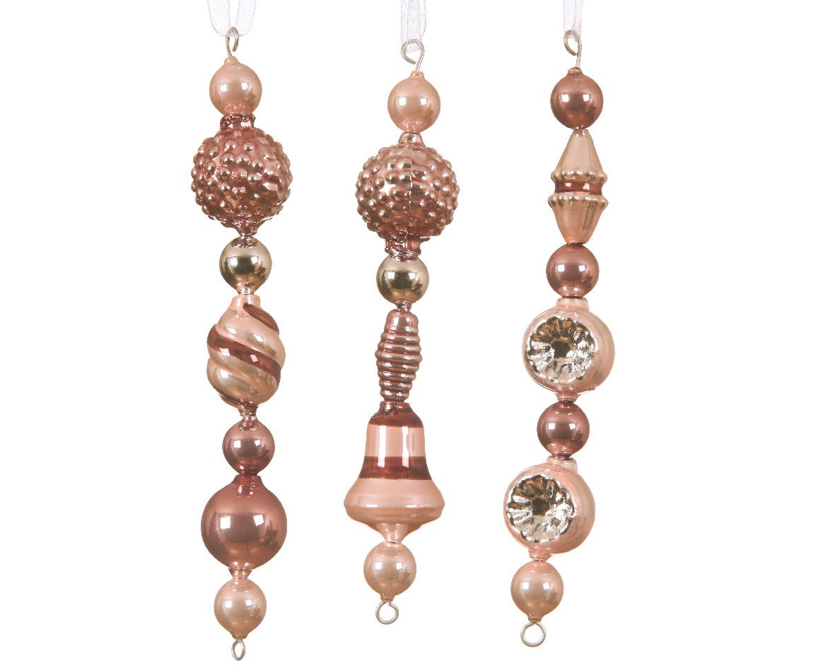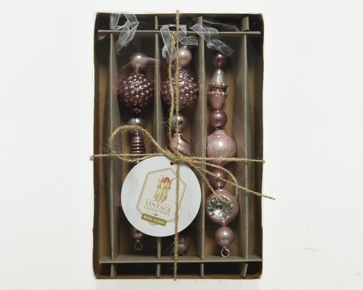 CHRISTMAS GLASS BAUBLE PINK HANGER THREE DESIGNS SET OF 3PCS - KAEMINGK Glass 3*3*Η15