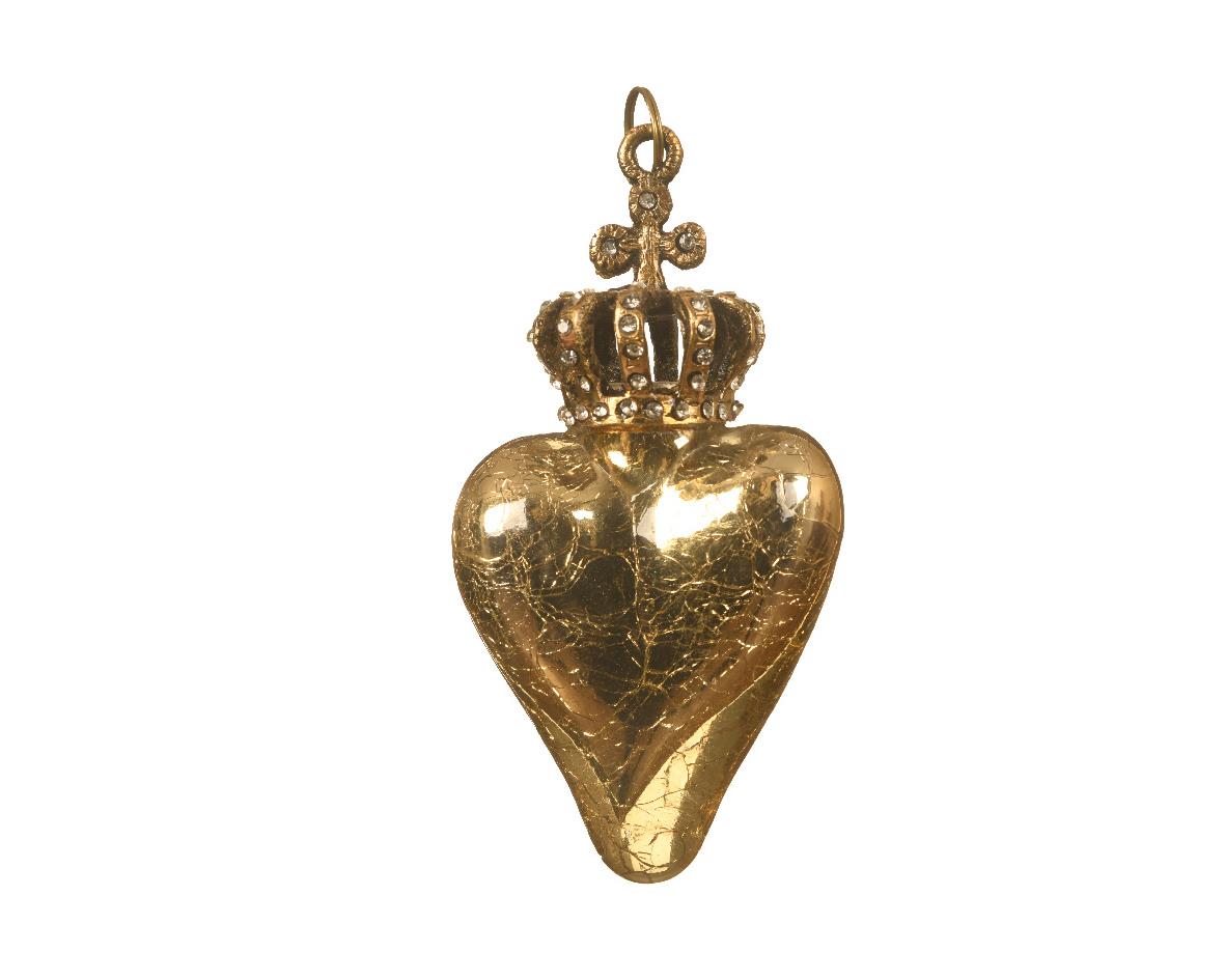 CHRISTMAS GLASS BAUBLE GOLD HEART WITH CROWN - KAEMINGK Glass 5*5*H9.5